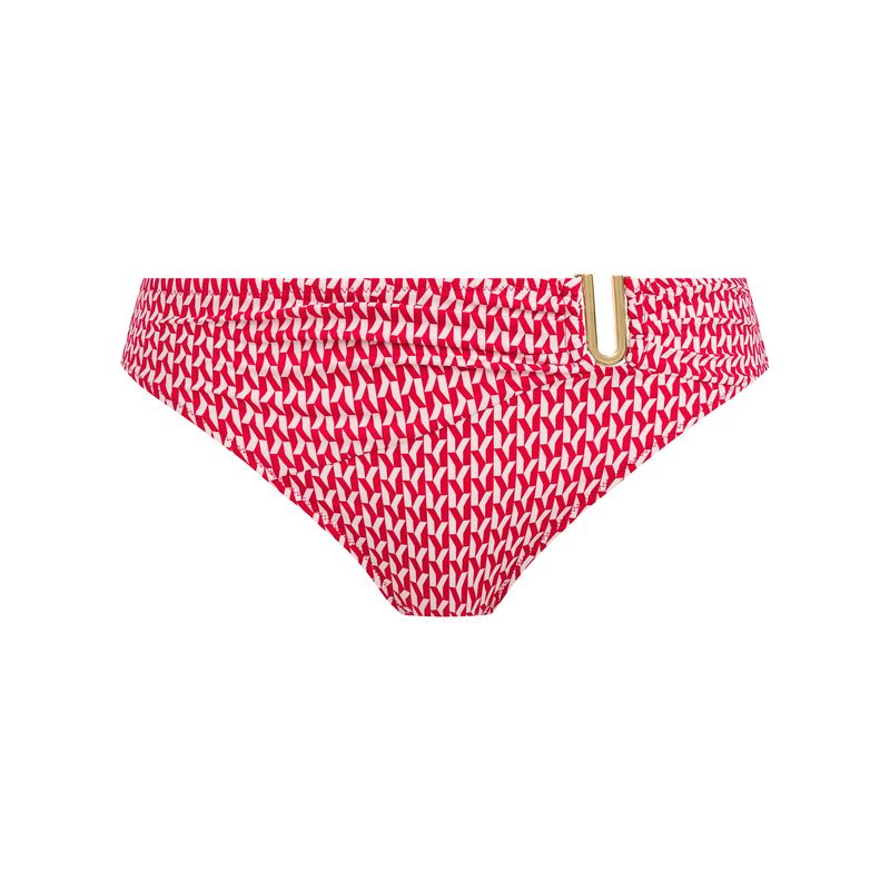 Experience effortless style with the Koh Lipe Mid Rise Bikini Brief in Radiant Red. Offering medium coverage and a fully lined interior for comfortable wear, this brief features elegant metallic gold trim that adds a subtle touch of luxury. Perfectly designed to combine comfort and chic, it supports your active lifestyle while making a confident statement.